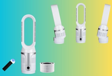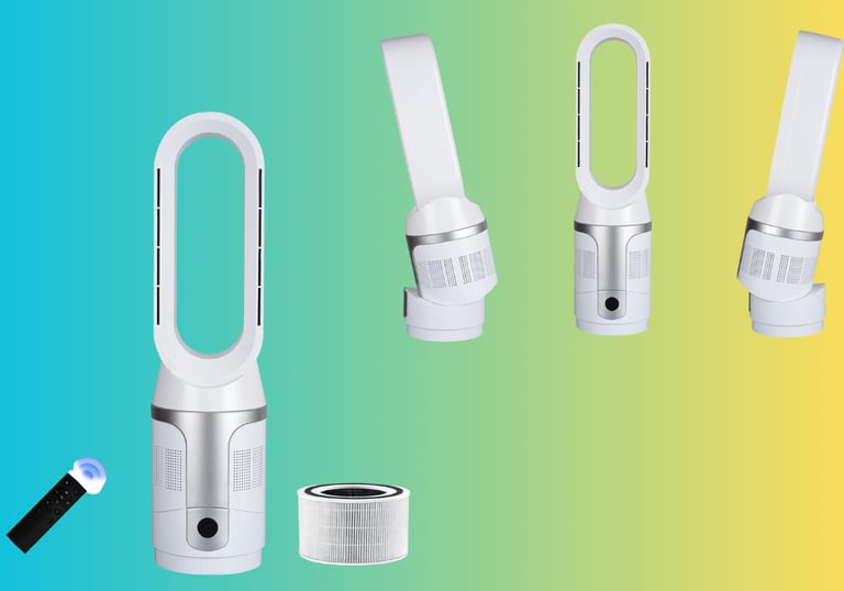 Bladeless Tower Fan and Air Purifier, True H13 HEPA Filter, 90° Oscillating Bladeless Fan with Remote and Touch control, 9H Timer, Floor Fans for Bedroom Home Office Use, Silver White