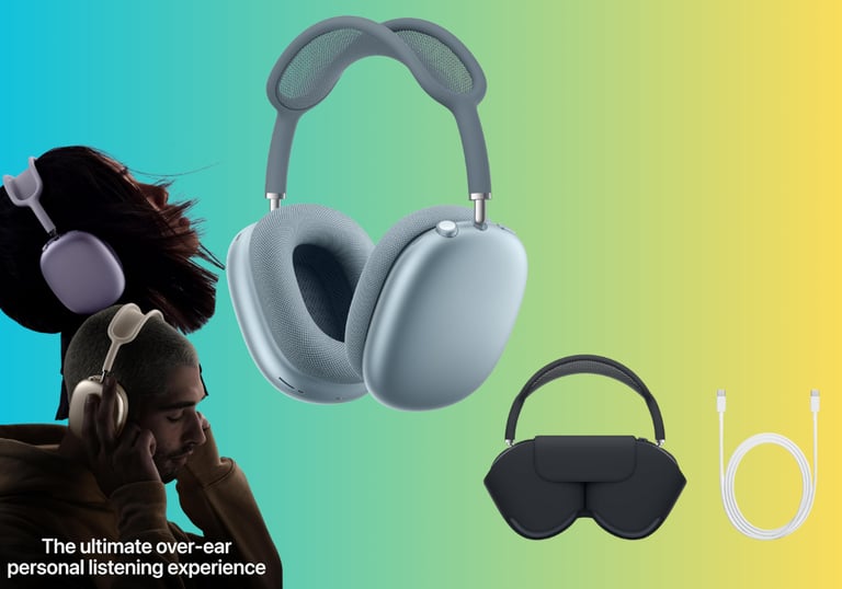 Apple AirPods Max Wireless Over-Ear Headphones, Pro-Level Active Noise Cancellation, Transparency Mode, Personalized Spatial Audio - Blue with AppleCare+ (2 Years)