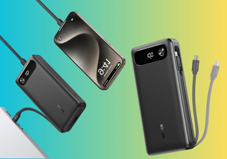 Anker Power Bank, 20,000mAh Travel Essential Portable Charger with Built-in USB-C Cable, 3-Port 87W Max Fast Charging Battery Pack, for MacBook, iPhone 16/15 Series, Samsung, Switch, and More