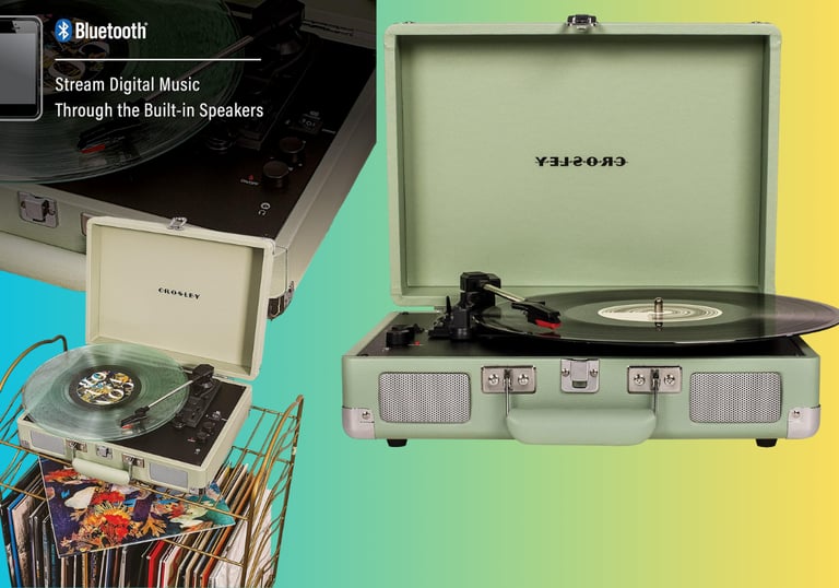 Crosley CR8005F-MT Cruiser Plus Vintage 3-Speed Bluetooth in/Out Suitcase Vinyl Record Player Turntable, Mint