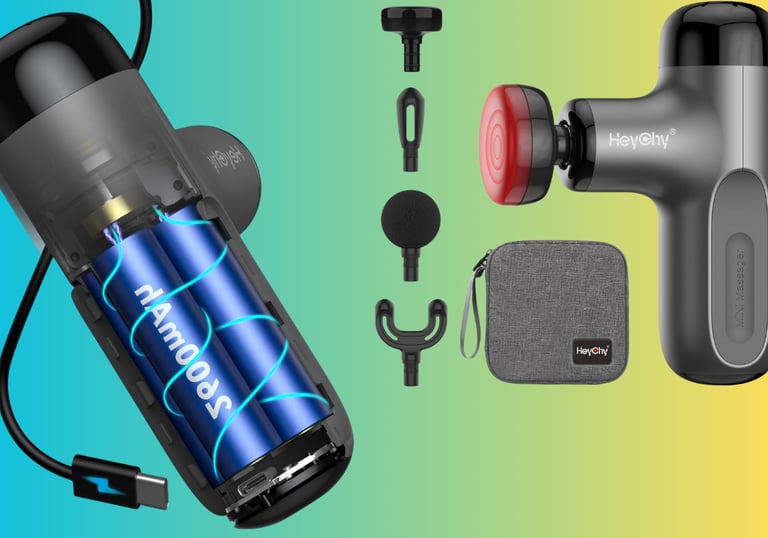 Mini Massage Gun with Heat, Deep Tissue Massage Gun, Portable Percussion Muscle Massager with 4 Massage Heads for Athletes